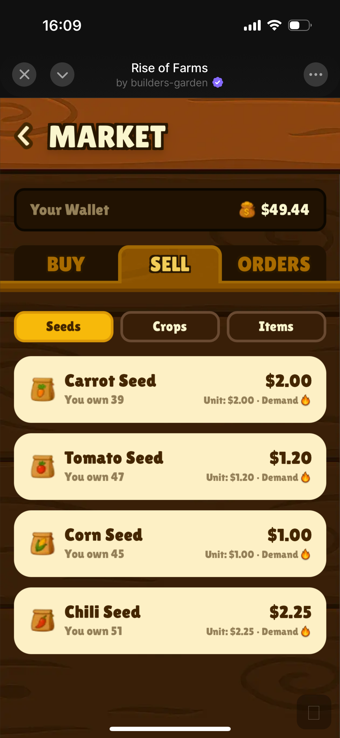 The Rise of Farms Marketplace is a fully onchain, peer-to-peer trading hub where players exchange seeds, crops, and crafted items.